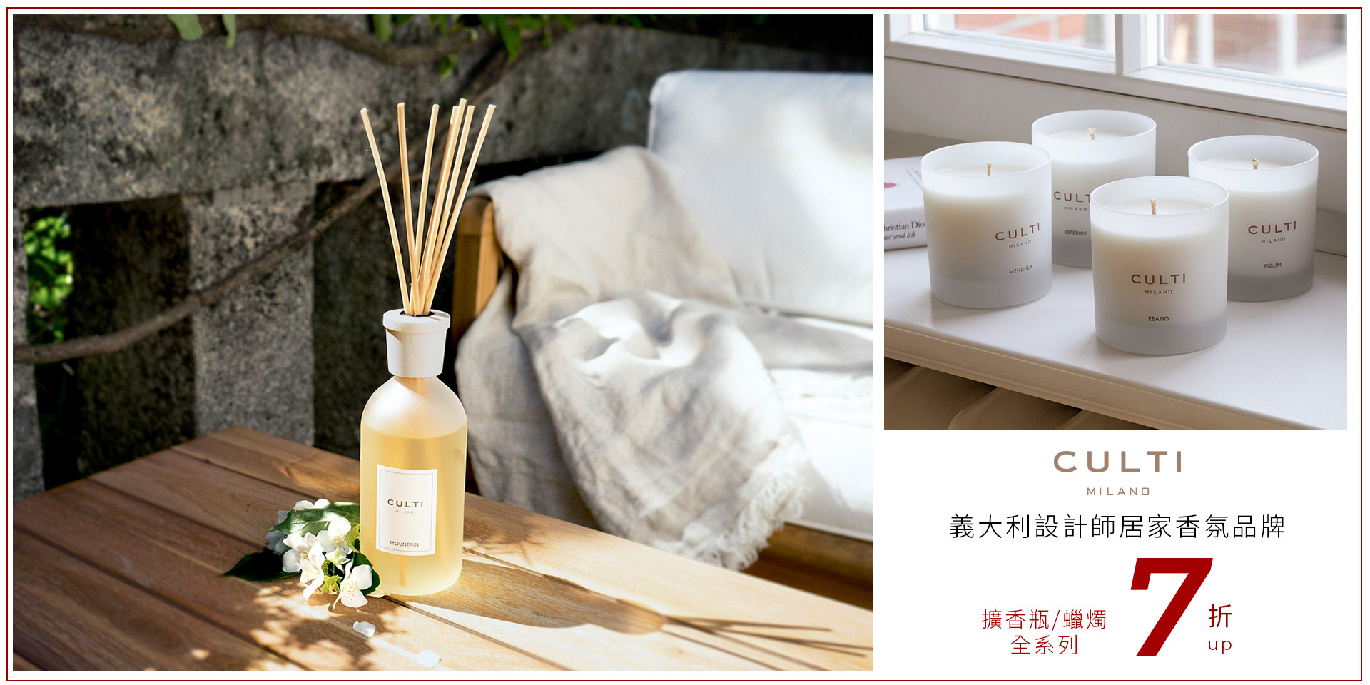 於1990年由義大利知名室內設計師Alessandro Agrati創立,CULTI代表Culture of Home,理念是打造「個性家居文化」,將不同風格的簡約與現代氣息的香氛巧妙地融於家居空間,同時首創將蘆葦桿應用於擴香中,讓香氣隨著時間創造出豐富且細緻的層次變化。取材於自然的簡約優雅設計,讓香氣成為你居家中最美好的裝飾。