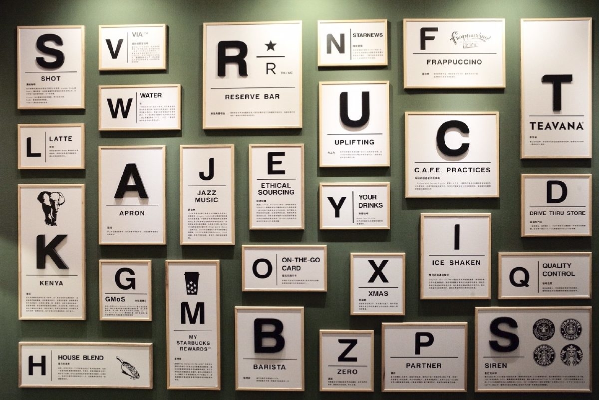 這片字母牆分別代表了到訪星巴克,所帶來的創新與美好體驗
