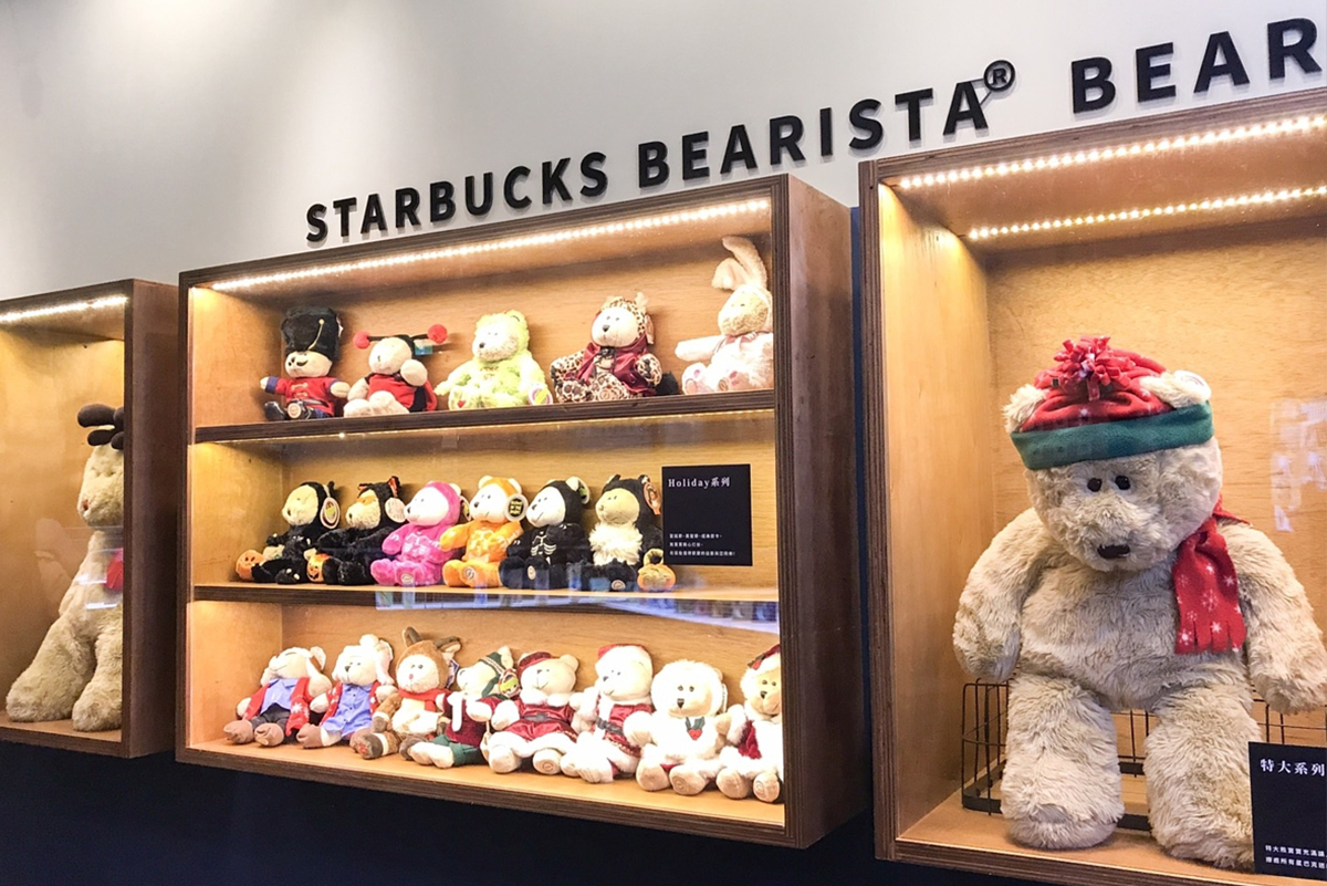 歷年來發售的紀念杯與小熊,櫥窗裡滿滿的大熊、小熊,真的只能用可愛來形容