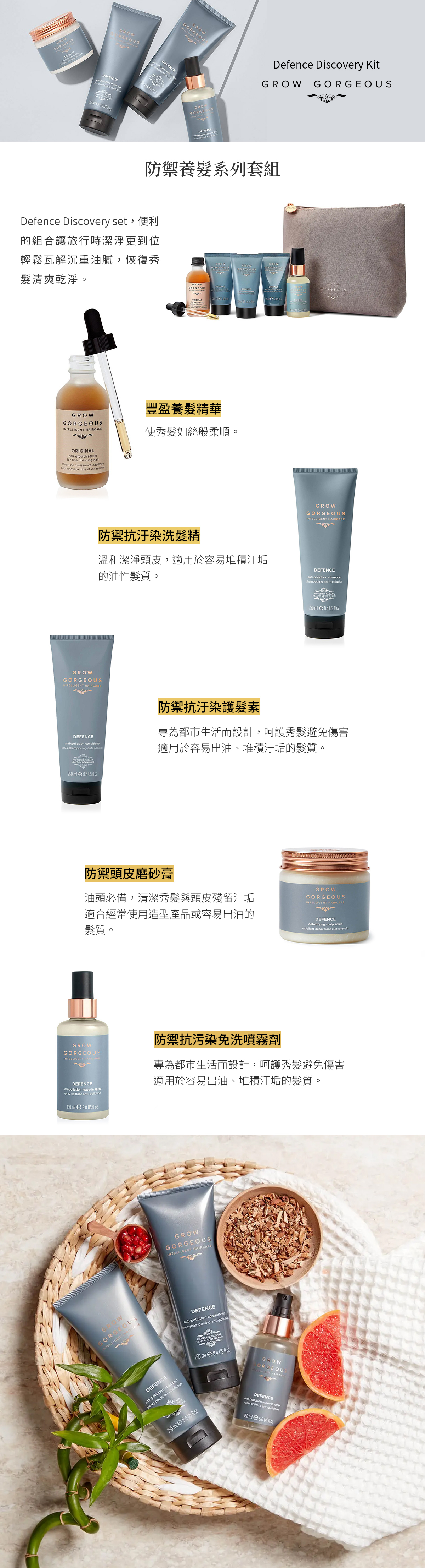 防禦養髮系列套組Defence Discovery set,便利的組合讓旅行時潔淨更到位。輕鬆瓦解沉重油膩,恢復秀髮清爽乾淨。