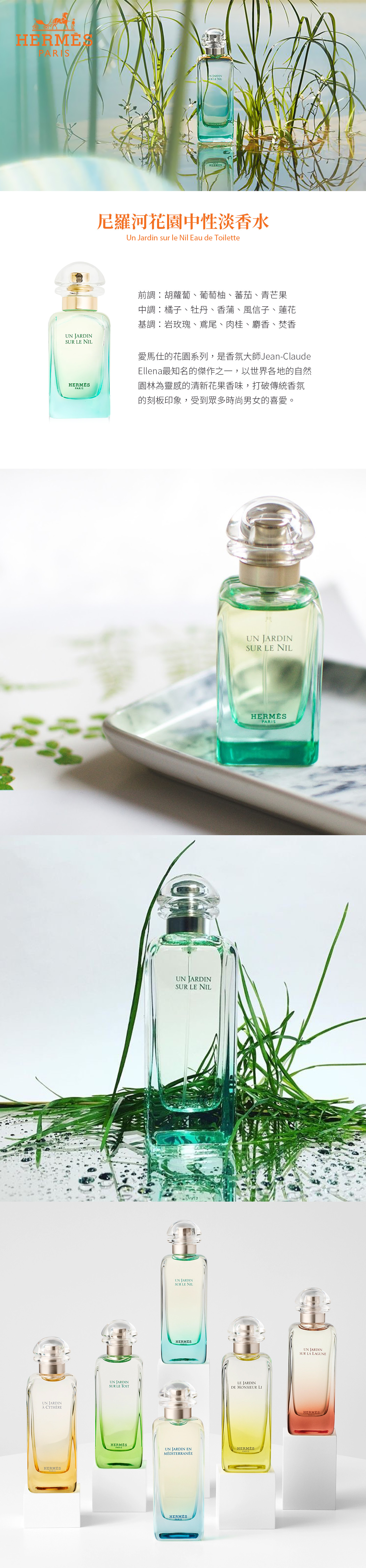 愛馬仕的花園系列,是香氛大師Jean-Claude Ellena最知名的傑作之一,以世界各地的自然園林為靈感的清新花果香味,打破傳統香氛的刻板印象,受到眾多時尚男女的喜愛。