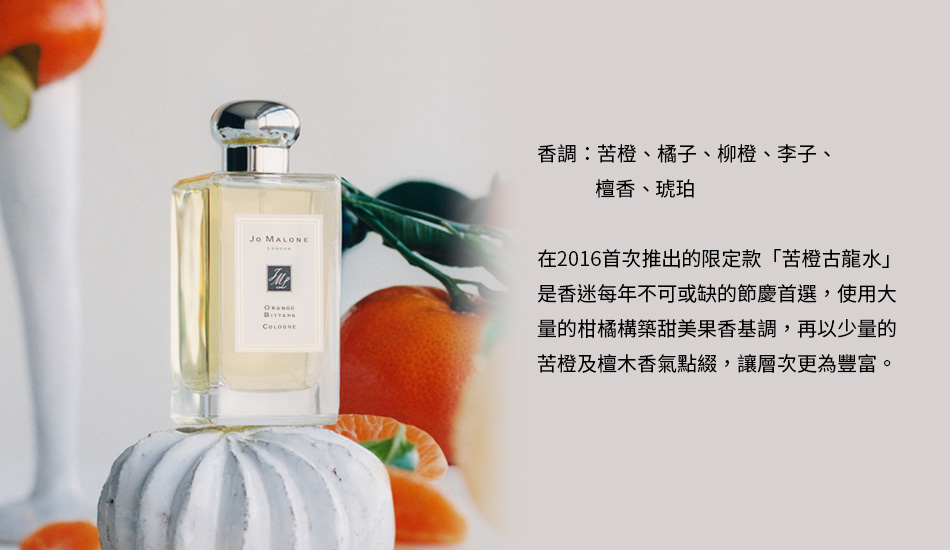 在2016首次推出的限定款「苦橙古龍水」是香迷每年不可或缺的節慶首選,使用大量的柑橘構築甜美果香基調,再以少量的苦橙及檀木香氣點綴,讓層次更為豐富。
