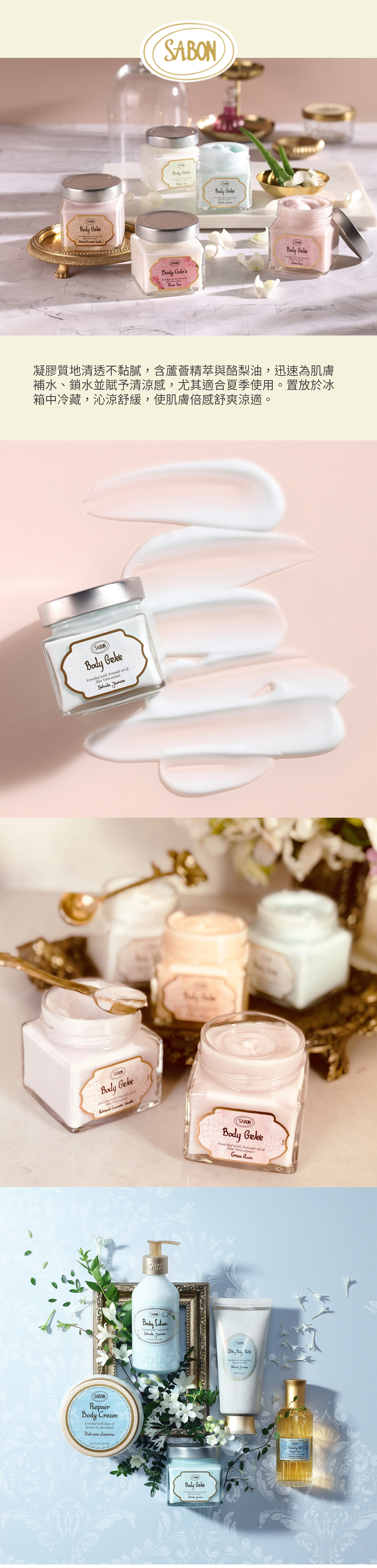 凝膠質地清透不黏膩,含蘆薈精萃與酪梨油,迅速為肌膚補水、鎖水並賦予清涼感,尤其適合夏季使用。置放於冰箱中冷藏,沁涼舒緩,使肌膚倍感舒爽涼適。