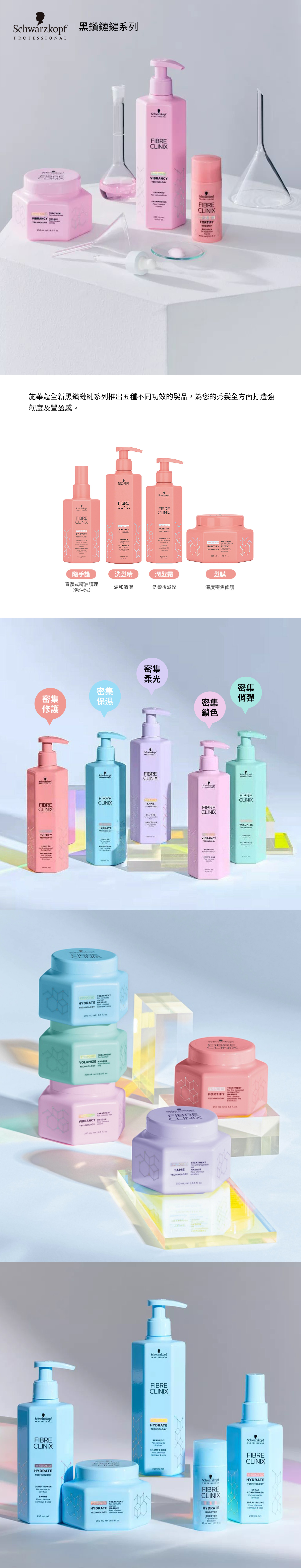 施華蔻全新黑鑽鏈鍵系列推出五種不同功效的髮品,為您的秀髮全方面打造強韌度及豐盈感。